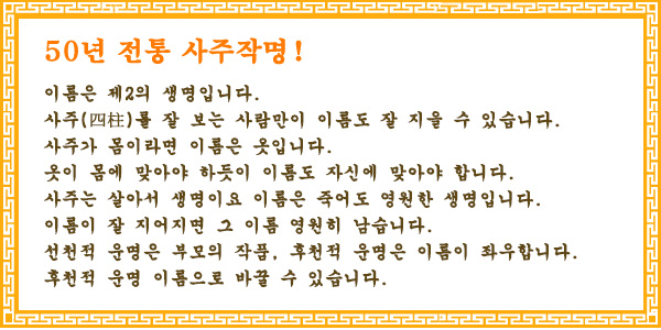 ⊙ 작명서비스는 유료로 제공되고 있습니다.